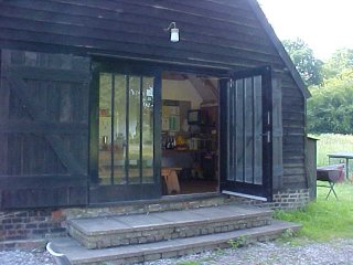 These barns are tucked away in secluded woodland near Aldbury, on the 4000 acre Ashridge Estate of woodlands, commons, and chalk downland in the Chiltern Hills. The larger of the two barns houses the living accommodation. |