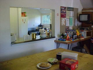 There are two doors from this room which open to the outside giving a very pleasant view over the surrounding fields. This building also includes the toilets and showers, and the pay phone is also here. At the end of the building is a drying room. |