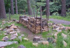 | The wardens had set up two dry stone walls. One of the walls was to remain in place and is going to include a wooden bench, where future visitors can sit and admire the stunning view of Ladybower and the Derwent Dams. |
