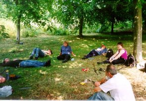 These "water runs" continued all day as we got hotter and more thirsty. The occasional breaks in the shade of the trees were very welcome. |