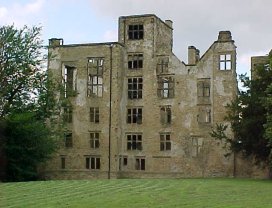 The Old Hall dates from around 1586 and was being transformed into a large house, but was never completed. The Old Hall still stands tall and ruinous. |