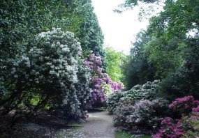 Planted for amenity effect there are many species and old hybrids of rhododendrons, azaleas and a fine