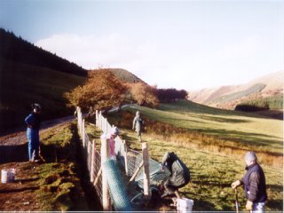 In order to protect the plants a fence needed to be built, around the area to be planted, that is substantial enough to remain in place for about 10 years until the plants have turned into established trees. |