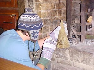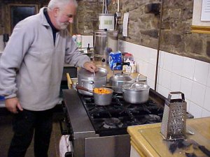 After a good hot shower, and putting on some dry clothes, any aches and pains from the day's work soon disappeared. Soon the log fire was burning bright and the evening meal was underway. |