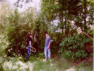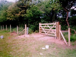 The new hinges etc. were fitted to the gate and this was finally finished. The holes for the remaining straining posts were dug and these posts were then put in ready for the fencing to be fitted. The clearing of the rubbish continued and at last the site was beginning to look neat and tidy. |