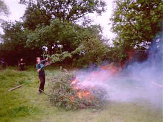 | On Sunday we lit a large bonfire to get rid of all the