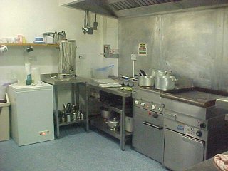 For larger groups there is also a whole bank of serving bays with steam heaters and hot lamps. There is also a large food storage area adjacent to the kitchen. |