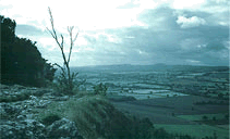 This great tree-clad escarpment runs for 16 miles across Shropshire, a massive limestone ridge shelving steeply on its western face to the patchwork fields of Ape dale, and on its eastern side sloping gently into the lovely Corve dale. The National Trust owns an eight mile stretch, about 600 metres wide. |