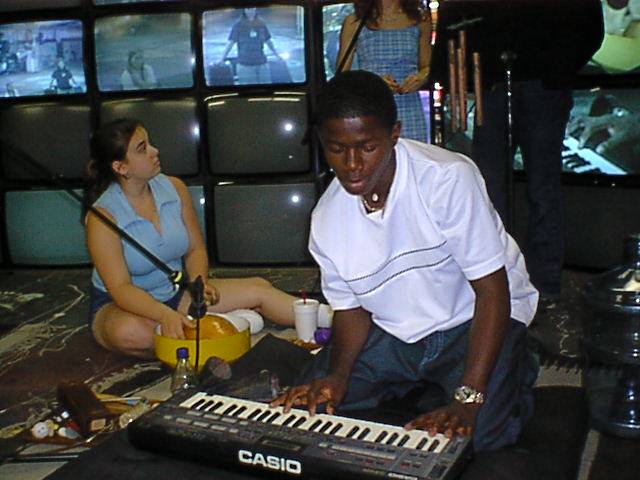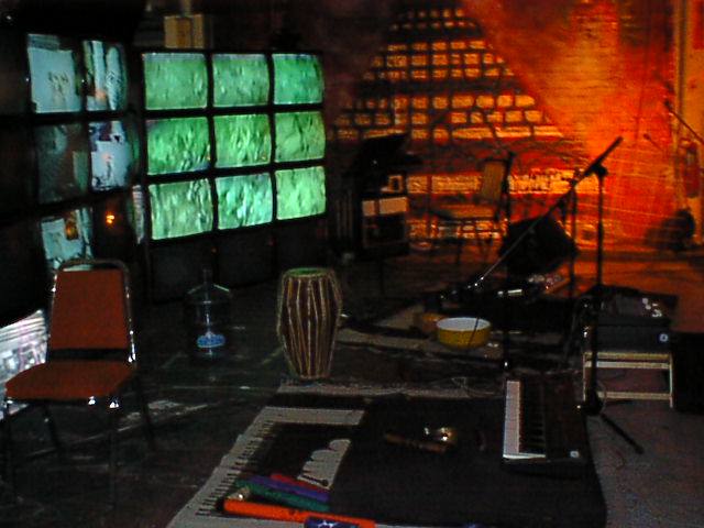 Students combined intermedia materials into a final performance installation for public presentation at the Nobles eXperimental interMedia Studio on July 27th, 2001.