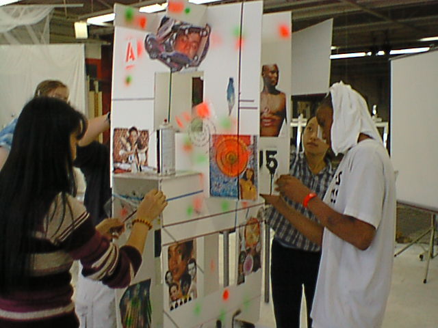 | Mai, Li and JC Building amplified graphic sculpture score |