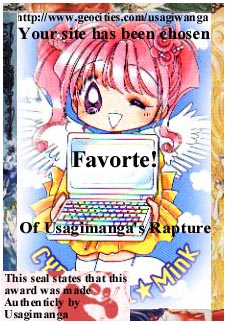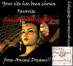 Are you feeling as if YOU deserve an award from MY site?!?! You better, because I think ALL the animé sites deserve awards!! If you REALLY want an award from MY site, just Email me your name/nickname, Site Address, and eMail!! It's as easy as THAT!!! HERE!! I have a sample picture of one of the awards!!