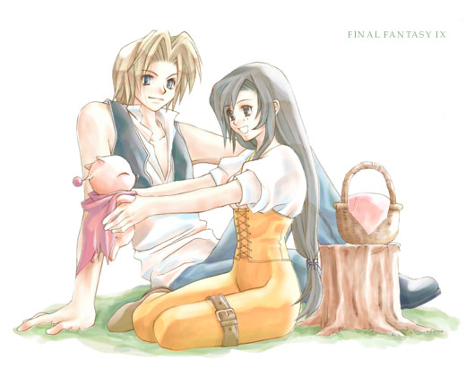 Zidane and Dagger cuddling a moogle