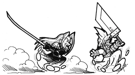 (I luv this piccy!!) Sephy just smiling and Cloud looking at Sephy like, "What's your problem?"