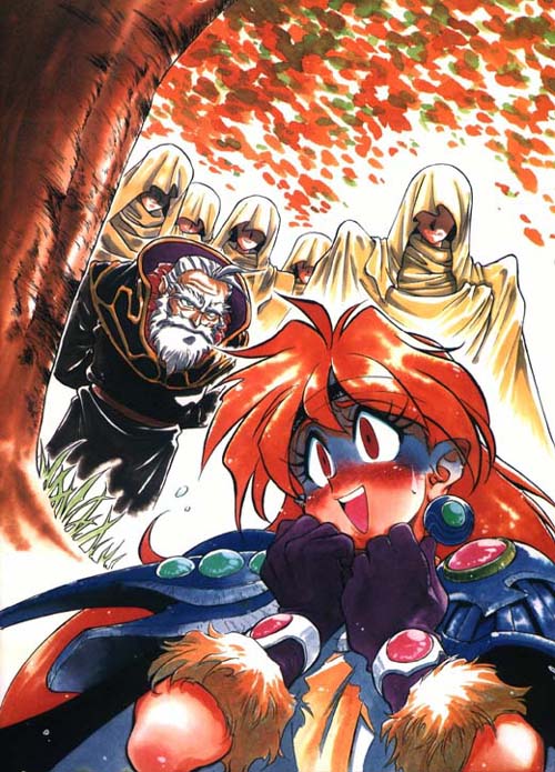 It is a world of fantasy, where magic rules and monsters lurk around every corner. A world of dragons, knights, and wizards. good versus Evil; Light versus Dark; A world populated with heroes and villains. There's cute little Lina, a fireball-throwing sorceress who steals from the wicked and gives to herself. Gourry, a handsome mercenary swordsman who is loyal as a man's best friend, but not quite as smart. The mysterious Zelgadis, who is after Lina in an attempt to recover a magical item that can bring about the end of the world. And the great humanitarian sage Rezo, who appears to help Lina fight Zelgadis' plans for world destruction. The fate of the world rests in Lina's hands, and she'll face everything from easily spooked dragons to maniacal berserkers in her quest for treasure.