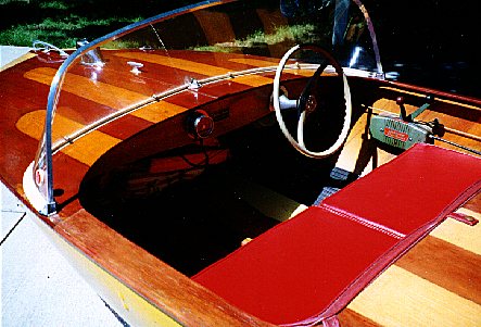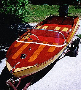 ..Yellow Jacket Boats were originally built in the late 1940's and early 1950's by the McDerby-Conatser Boat Co. of Denison Texas. The Co. was also (for a short time) partially owned by Roy Rogers "Happy Trails and Wakes". We believe this boat, due to it's size , was built in the late 1940's. Yellow Jackets were very durable molded plywood boats, extremely fast in their day. Designed by Cole, winning races like the "Round Catalina Island race" and of course early NOA OPC (Outboard Performance Craft) events, years before OPC was an APBA (American Power Boat Association) division. We have heard, that they set a speed record from New Orleans to St. Louis in 1953. Our boat with it's 25Hp motor would do almost 35Mph and we used it as a great ski boat, occasionally even with two skiers. At times we used it on the Grand River and in Lake Michigan. The motor, boat trailer and all accessories are in sound condition having been carefully restored and well maintained over the past 40 years that we have owned and operated the boat.