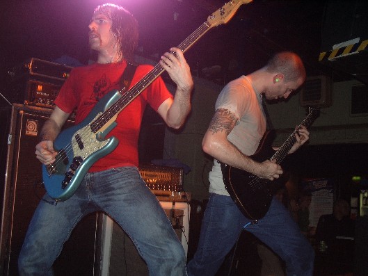 First up on the bill were Ephel Duath, who's latest CD "The Painter's Palette" has been causing quite a stir in metal circles. Usually billed with the more "atmospheric death" metal bands, tonight they seemed equally comfortable with the mostly hardcore crowd. I was however not totally convinced. I always appreciate and have a healthy respect for bands who try to be original and mix fucked up shit into their music, but I feel the beauty is in knowing when to hold back. Being wierd for the sake of it in my view dulls the very effect bands are trying to acheive. And whilst Ephel Duath tried hard, I found it difficult to follow what they were trying to do. In fairness I wasn't familiar with the material, maybe this would have made their set more enjoyable.