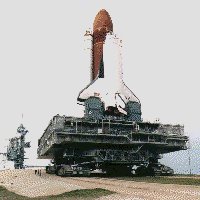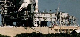 Launch Complex 39's Pad A and Pad B were originally designed to support the Apollo program and were modified for Space Shuttle launch operations. Major changes included the erection of a new Fixed Service Structure (FSS), addition of a Rotating Service Structure (RSS), and the replacement of the Saturn flame deflectors with three new flame deflectors. The upper portion of the Saturn V Launch umbilical tower was removed from two of the Apollo Mobile Launchers and installed at the pad to serve as the FSS. Fuel, oxidizer, high pressure gas, electrical, and pneumatic lines connect the Shuttle vehicle with ground support equipment and are routed through the FSS, RSS and Mobile Launch Platform. Space Shuttle access and servicing at the pad are provided by: FSS - Gaseous Hydrogen Vent Arm for electrical power and for venting hydrogen from the external tank. RSS - Mid-Body Umbilical Unit for fuel cell servicing and life support functions. RSS facilities for loading and off-loading payloads. Hypergolic Umbilical System for servicing the Orbiter systems with fluids and gases. Gaseous Oxygen Vent Arm for preventing ice formation atop the external tank. Orbiter Access Arm (OAA) for crew entrance and exit. MLP - Tail Service Masts for propellant loading and electrical power. The FSS is topped by a 24.4 meter (80ft) tall fiberglass lightning mast grounded by 335 meter (1,100ft) cables that are anchored north and south of the pad. The Mast provides lightning protection for pad structures and the Space Shuttle. The RSS accommodates the loading of payloads vertically at the pad. It is mounted on a semi-circular track which allows it to rotate through an arc of 120 degrees on a radius of 36.6 meters (120 ft). The RSS pivots from a hinge on the FSS until the RSS spacecraft change out room fits flush with the Orbiter's cargo bay. This room allows payloads to be installed or serviced under contamination-free or "clean room" condition. Blast-protected hypergolic storage and supply systems are provided at each pad, and the Launch Processing System (LPS) is used to monitor all aspects of vehicle and payload operations. The LPS system interconnects to the MLP through Hardware Interface Modules (HIM's) located in Pad Terminal Connection Rooms beneath the pads. Pads 39-A and 39-B are virtually identical and roughly octagonal in shape. The distance between pads is 2,657 meters (8,715 ft). The pad base contains 52,000 cubic meters (68,000 cubic yards) of concrete. The ramp leading up to the pad is inclined at a 5% grade. The flame trench is 13 meters (42 ft) deep, 137 meters (450ft) long and 18 meters (58 ft) wide. The orbiter flame deflector is 11.6 meters (38ft) high, 22 meters (72 ft) long and 17.5 meters (57.6 ft) wide. It weights 590,000 kg (1.3 million lbs). The SRB deflector is 12.95 meters (42.5 ft) high, 12.8 meters (42 ft) long and 17.4 meters (57 ft) wide. It weights 499,000 kg (1.1 million lbs). The Sound Suppression Water System is used to protect the launch structure from the intense sound pressure of liftoff. Its water tank is 88.9 meters (290ft) high and has a capacity of 1,135,000 liters (300,000 gallons). There are 6 permanent and 4 extensible pedestals that are used to support the MLP at the pad. Dynamic loads at rebound are 3,175,200 kg (7,000,000 lbs) to 4,762,800 kg (10,500,000lb) at liftoff. The pad is lit with 5 clusters of Xenon high-intensity searchlights (total searchlights: 40) around the pad perimeter. The height of the Fixed Service Structure (FSS) is 105.7 meters (347ft) to the top of the lightning mast (referenced to the pad base) and the Rotating Service Structure (RSS) is 57.6 meters (189ft) high. The Fixed Service Structure (FSS) and Rotating Service Structure (RSS) on Pad 39A underwent a renovation between June and September 1993. Some 13,773 gallons of paint were used on two coats and 1,866 tons of sand were used in the sandblasting operation. The LC-39 Launch complex also contains large liquid oxygen (LOX) and Liquid Hydrogen (LH2) storage tanks. These are large ball-shaped vacuum jacketed dewar bottles used to store super cold cryogenic propellants for the shuttle external tank. The LOX tank, located at the northwest corner of the pad stores 3,406,500 liters (900,000 gallons) of liquid oxygen at a temperature of minus 183 degrees C (-298 F). The LH2 tank is located at the northeast corner of the pad and stores 3,218,250 liters (850,000 gallons) of liquid hydrogen at a temperature of minus 253 degrees C (-423 degrees F). The Weather Protection System protects orbiter tiles from wind blown debris, rain and hail. Wheeled metal doors that ride on steel beams are attached to the Rotating Service Structure and the Fixed Service Structure. Doors slide together (to within 3 inches of each other) between the orbiter's belly and the external tank, providing protection for the lower portion of the orbiter. East Door, attached to the RSS measures 16 meters (53 ft) long, 8 meters (27 ft) tall and weighs 19 metric tons (42,000 lbs). West Door, attached to the FSS measures 13 meters (43 ft) long, 11.6 meters (38ft) tall and weighs 21 metric tons (46,000 lbs) The top of the orbiter is shielded by an inflatable seal extending from the Payload Change out Room forming a semi-circle covering 90 degrees of arc between the orbiter and its external tank. The sides of the orbiter, between the vehicle and the external tank, are protected by a series of 20 metal bi-fold doors that fold out from the Payload Change out Room. The doors measure 24.4 meters by 1.2 meters (80ft x 4ft). There is approximately 1.25 million feet of tubing and piping at Launch Complex 39, varying in sizes from .25 inches to 114 inches in diameter. This is enough pipe to reach from Orlando to Miami.