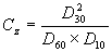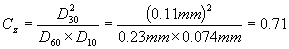 where D60 = diameter corresponding to 60% finer 3. Coefficient of gradation (Cz): This parameter is defined as
