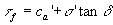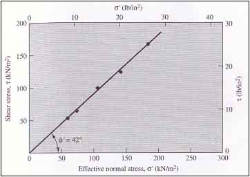 stress is equal to the total stress and the cohesion, c, is zero. Direct hear tests are repeated on similar specimens at various normal stresses. The normal stresses and the corresponding values of tf obtained from a number of tests are plotted on a graph from which the shear strength parameters are determined.