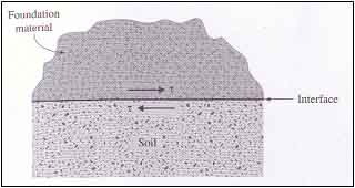 between the soil and foundation material The shear strength parameters between a soil and a foundation material can be conveniently determined by a direct shear test. This is a great advantage of the direct shear test, and then the soil can be placed above it (that is, in the top part of the box) and the test can be conducted in the usual manner.