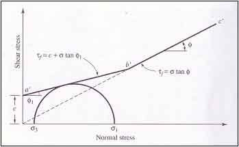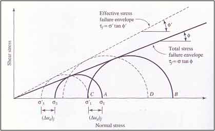 and the straight line b�c� follows the relationship given by Eq. 12. The effective stress failure envelope drawn from the effective stress Mohr�s circles will be similar to that shown in Figure 11.
