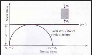 where cu = undrained shear strength and is equal to the radius of Mohr�s circles. Note that the f = 0 concept is applicable to only saturated clays and
