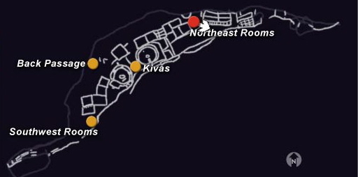 | A diagram of the 40 rooms and 2 Kivas at Balcony House. |
