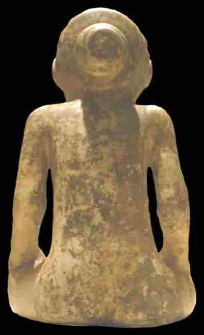 | The male (left) and female (right) statues were discovered in Mound C, the smallest of the three major mounds. Mound C, the burial mound, has been completely excavated and has produced many artifacts and much information about Etowah. Constructed from North Georgia marble, the male is 24 inches tall and the female is 22 inches tall. The statues were discovered damaged and appeared to have been buried without much care, as though they were tossed in with one landing on top of the other, along with the scattered bones of four individuals. Buried in perhaps 1375 A.D., what is uncertain is why. One theory speculates that the statues were important religious icons and were buried to avoid being taken by hostile forces. Another theory speculates that hostile forces buried the statues to symbolize the destruction of Etowah. Or it could be that there were natural disasters such as an epidemic or crop failures prompting them to rethink their way of life. My favorite explanation? After concluding they had been abandoned by the gods, they placed their religious icons in the ground as an act of closure. |