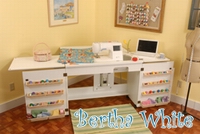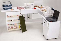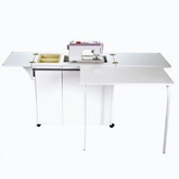 | White Embroidery Machine Air Lift Credenza w/Large Opening & Quilting Extension |