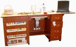 | Cherry Embroidery Machine Air Lift Credenza w/Large Opening & Quilting Extension |