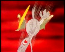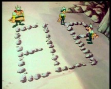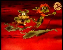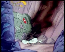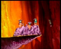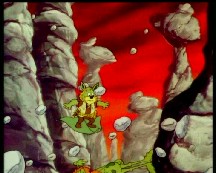 The Urpney's are told by Zordrak to use the Egg of Death, but they don't pull the lever in time and crash between two rock faces. Frizz and Nug push the egg out by hand and fall out with the egg. The egg breaks open and a black gas emerges from the egg knocking out the Urpney's. Extremely angry at the Urpney's failure to stop Pildit and Rufus, Zordrak says he will stop the intruders himself by burying them alive. Zordrak uses his power on the canyon and the rock is breaking up all around Rufus and Pildit. Pildit is knocked off his leaf to the ground and Rufus goes to help him, where they are both buried under the rocks. Zordrak assumes he was successful in disposing Rufus and Pildit, so orders all the troops to celebrate.