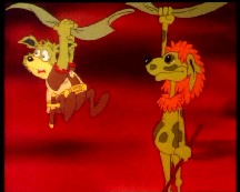 Rufus and Pildit are knocked flying and barely managing to hold on to their leaves. They climb back on to the leaves, but as they are flying away a grabbing device from the Whirleyped grabs Rufus, but he manages to bite himself free. Rufus and Pildit fly into a canyon in the hopes of losing the Urpney's.