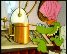 Meanwhile, Zordrak is watching them on his view screen and is unimpressed by whom the Dreammaker has sent to retrieve the Dreamstone. Zordrak sends Blob, Frizz and Nug to man the Whirleyped and go destroy Rufus and Pildit. We are then introduced to Urpgor, a green Urpney who has created all of Viltheed's vehicles and weapons. He explains his newest weapon to Blob, Frizz and Nug called the Egg of Death. Urpgor tells the three Urpney's that they must pull a lever before launching the egg and warns them that they must not forget. Meanwhile Rufus and Pildit are almost clear of the Mist of Limbo when they get struck by lightening, though that's the least of their worries as the Whirleyped is headed straight at them.