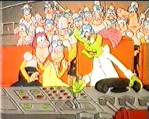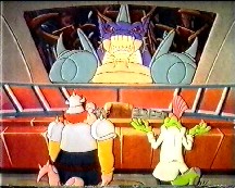 When they finally try to take off the ship only gets so high and then hits the ground again. After a few adjustments to the vehicle in the form of a propeller, then wings the vehicle still doesn't leave the ground properly. Zordrak appears on the view screen asking if they have left yet and Urpgor tells him that the vehicle needs more power. Zordrak is angry and tells Urpgor to find a source of power, Urpgor goes off to think of a way of getting the extra power needed.