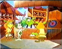 Meanwhile, over in the Land of Dreams, it's market day and Rufus and Amberley are taking Spildit around the market. They stop at an hoop-la stall, where Spildit wins a statue in the shape of a duck. The Noops and Spildit arrive back at the Dreammakers house, where they find the Dreammaker and Mr Blossom in the Dreammakers garden ispecting a new flower grown by Mr Blossom. However Spildit runs around boasting about winning her statue prize that she trips and drops it. The statue breaks when it hits the floor, making Spildit extremely upset.