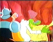 Meanwhile, the Urpney's had arrived back at Viltheed with the mineral and Urpgor is about to launch the ship. Frizz notices something written on the map they had and tries to tell Urpgor, but Urpgor tells him to shut up. The ship takes off effortlessly, so it seems the mineral has worked. Frizz is still trying to tell Urpgor what he has found written on the map with Urpgor uninterested in listening. He finally manages to tell Urpgor that although the mineral increases the power of any fuel, it doesn't last any longer than about 10 seconds! The ship is soon headed back down to the ground and crashes.