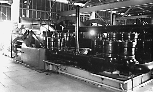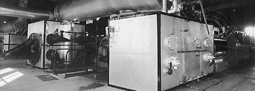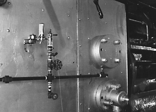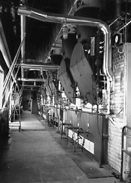 Inside the Boiler House are a bank of boilers suppling steam to the Oil Pumping Engines. Not all the Boilers are working at one time, some are being cleaned or repaired. These boilers supplied about 40 pounds steam pressure to the Pipeline Pumping Engines.