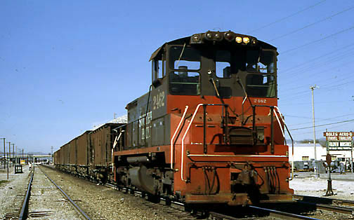 Here is a view of Conrock's, General Electric, 44 ton switch engine. As you can see it has protective sheet metal cover over each end of the hood, this cover kept sand from falling into the engine compartment.
