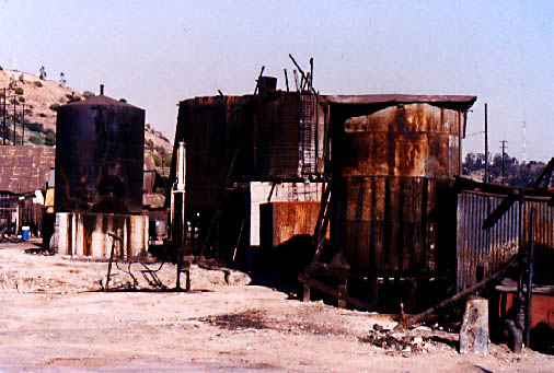 During the 1960s, I took these photos of the Manely Oil Company in Los Angeles, next to Chinatown, it was one of the last surviving downtown oilfields. For those of you that have seen this page before with Black & White photos, now it's in COLOR. All my old color slides that were taken at the same time B&W have been processed into the website.