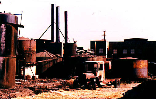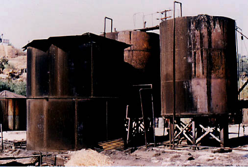 Around the plant were oil tanks of many sizes for storage, used until the oil could be taken to the refinery. Look closely and you will see a wooden tank.