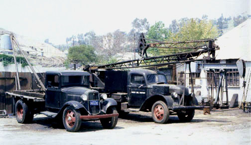 These are the trucks used to work on the wells. From the collection of the California Division of Oil and Gas Department.