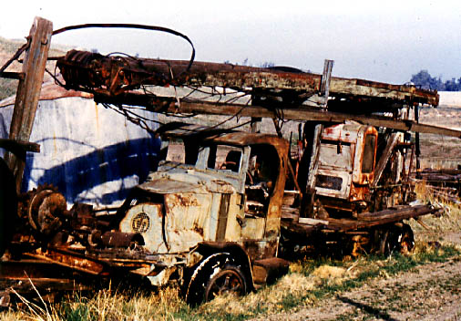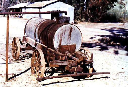 Still in use when this picture was taken some thirty years ago, this tank wagon used to oil the local roads in the Simi Valley area.