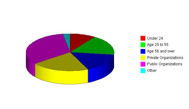 The breakdown of the market for event planning, falls in a wide, very diverse grouping. Individuals as well as organizations demand the services we provide. In order to provide the greatest depth of information, the market segments have been broken down into private and public organizations, and age groups.