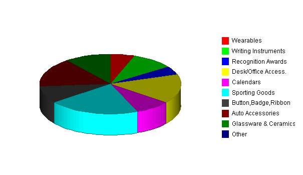 Below are the major product segments of the advertising specialties market and their corresponding percentage of the total market as measured by large distributor dollar sales: