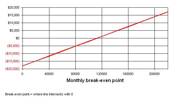 Elsewares intends to concentrate its sales force in the western United States and to reach a sales level of $500,000 by the end of 1997. With our fixed cost estimate of $18,000 per month, we need to sell 112,500 units to break-even in a month. Given the estimates, we hit running monthly break-even after the fourth month.