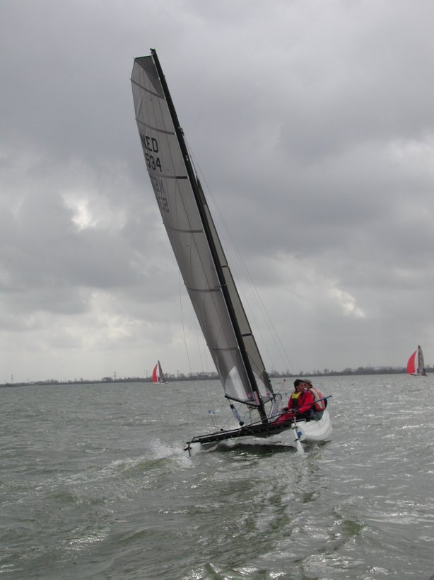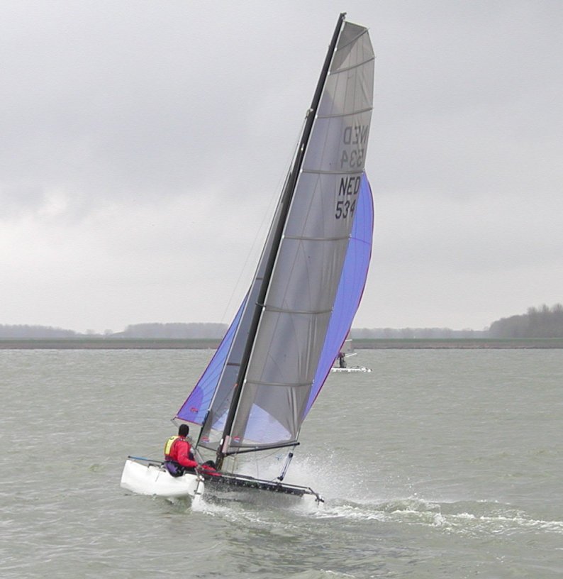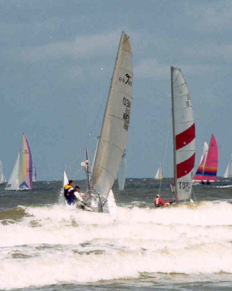| We zullen naar alle waarschijnlijkheid vooral in de open klasses varen omdat gewoonweg onze aantal boten nog te laag zijn voor een eigen klasse. Dit startveld zal overigens wel het "snelle boten" startveld zijn aangezien we dezelfde Texel handicap hebben als de Formule 18 klasse. Wanneer er solo gevaren wordt is de rating vergelijkbaar met die van de A-cat. Alle andere moderne singlehanders liggen in de orde van 5 tot10 Texel punten achter op de F16. De Dutch Coast Challenge is het enige klasse evenement voor de F16 in 2004. Alleen F16's kunnen hier aan mee doen (en Spitfires). |