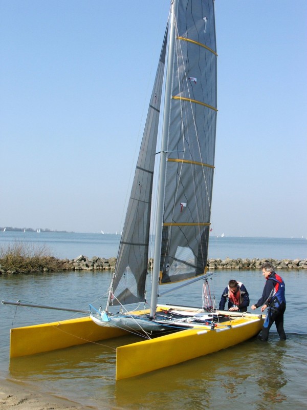 | Welkom. Na de eerste Formule 16 wedstrijden in USA en Australie is nu ook Nederland aan de beurt. Ook in Nederland zal de F16 klasse met zowel sloops (bemanning van 2) als met unirigs (solo) gezeild gaan worden. Beide met een asymmetrisch spinnaker c.q. gennaker natuurlijk. USA en Australie hadden reeds een redelijke basis van F16 ontwerpen en daar waren de start-ups dan ook het makkelijkst. De Nederlandse start-up zal wat meer inspanning vergen. We zijn op dit moment nog een klasse van bescheiden omvang maar de groei zit erin. Het eerste jaar is volbracht en een groei naar dubbele cijfers wordt verwacht. De Formula 16 klasse bestaat uit de modellen Stealth F16, Taipan F16 en Blade F16. Dispensatie hebben de modellen Taipan 4.9, Stealth Race and Swell Spitfire gekregen. De Nederlandse klasse organisatie werkt met vrijwilligers en kent ook voor 2004 geen contributie. In 2004 zal voor ons de Dutch Coast Challenge het belangrijkste evenement zijn. |