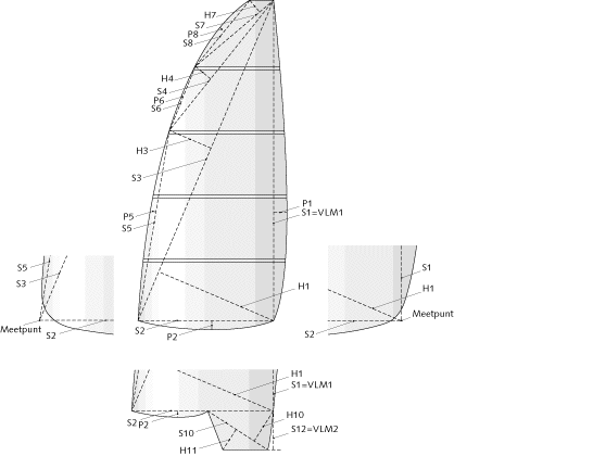 | Actual sailarea can be measured by using the Texel methode (above) or the ISAF methode | |||||||||||||||||||||||||||||||||