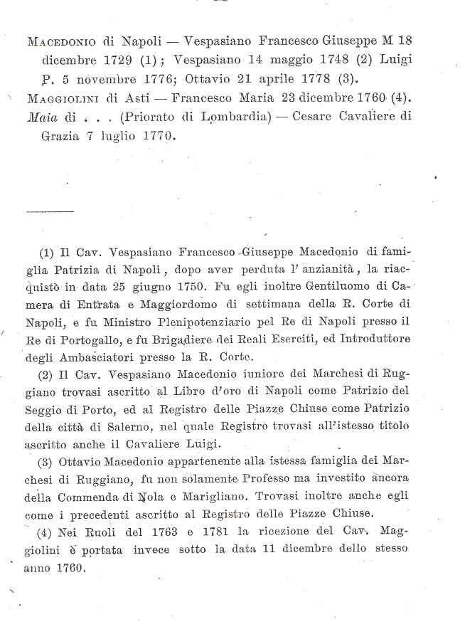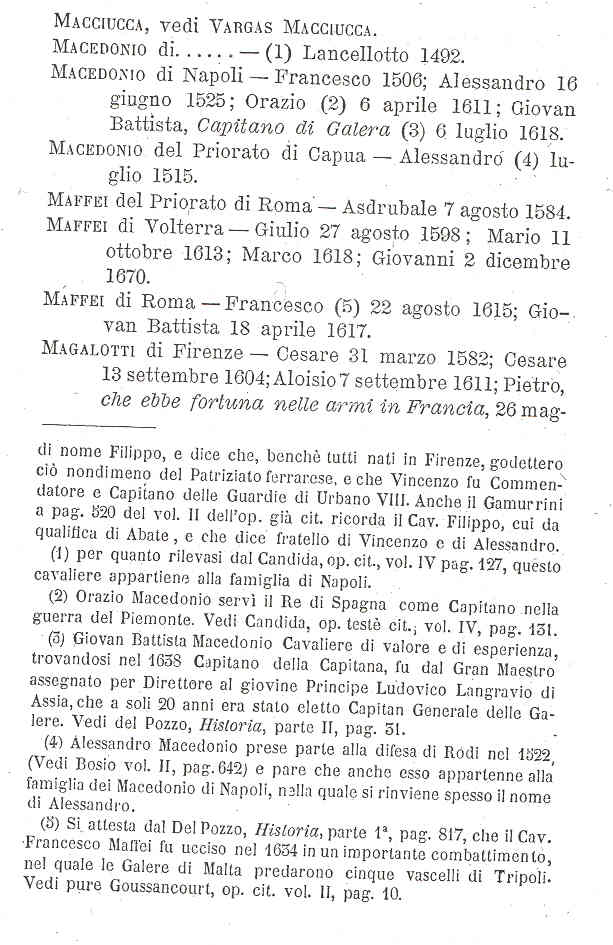 in merito alla Sua richiesta, Le invio in allegato copia dei alcune pagine di "Elenco dei Cavalieri del S.M. Ordine di S. Giovanni di Gerusalemme ricevuti nella Veneranda Lingua d'Italia" di Francesco Bonazzi, Napoli 1897, in cui trover� riferimenti a membri della Famiglia Macedonio appartenenti all'Ordine. Cordialmente Dott.ssa Valeria Maria Leonardi Bibliotecaria -----Messaggio originale----- Da: [email protected] [mailto:[email protected]] Inviato: venerd� 13 gennaio 2006 21.24 A: [email protected] Oggetto: richiesta notizie Spett. Segreteria , negli archivi di famiglia risulta che la mia famiglia dal 1400 rivesti' l'Abito dei Cavalieri di Malta e che alcuni miei antenati sono sepolti a Malta.Trattasi della Dinastia dei Principi Macedonio (Makedonoscky)Vicere' delle Calabrie , Duchi. Un mio trisavolo fu il Giureconsulto Vincenzo Macedonio ( cavaliere di Malta seconda meta' del 17oo), Principe di Roccella , duca di Grotteria, ove esiste ancora il Palazzo ducale e la chiesa avita Macedonio. In alcune Cappelle di Famiglia custodirono reliquie - Vorrei sapere se dai vs archivi risultano ulteriori notizie- Grata Principessa Eleonora Macedonio d'Aragona Skanderbeg www.geocities.com/k_hohenstaufen www.federicostupormundi.it |