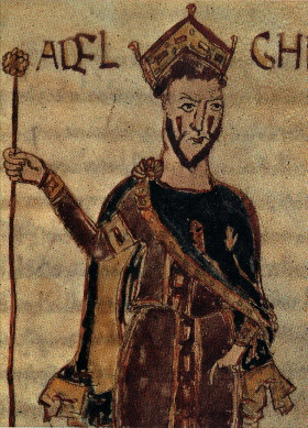 | Miniatura del Re Longobardo Adelchi, figlio di Re Desiderio e della Regina Ansa. Adelchi | ||||||||||||||||||||||||||||||||||||||||